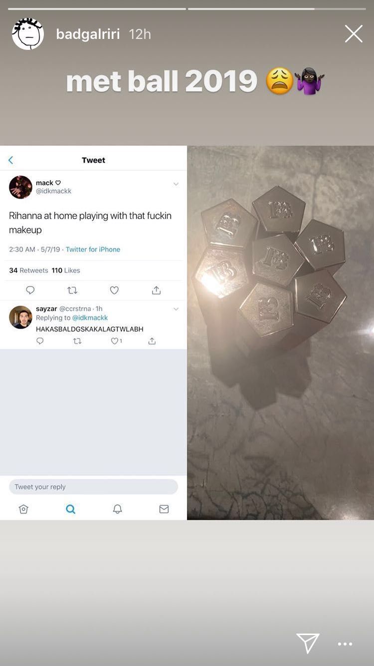 Rihanna nu a putut participa la ediția din acest an a Met Gala, deoarece s-a aflat în Regatul Unit pentru lansarea Fenty Beauty. În seara evenimentului, artista a postat o fotografie cu Anna Wintour, desemnând-o cel mai bine îmbrăcată prezență la Met. În aceeași seară, Rihanna a postat un Insta Story care îi explică absența – șapte rujuri alături de un mesaj al unui fan dezamăgit de pe Twitter, care a scris: „Rihanna este acasă jucându-se cu machiajele”. Absența Rihannei de la Met Gala nu este, totuși, fără precedent. Artista a lipsit de la ediția din 2016, când tema s-a intitulat „Manus x Machina: Fashion in an Age of Technology”.
